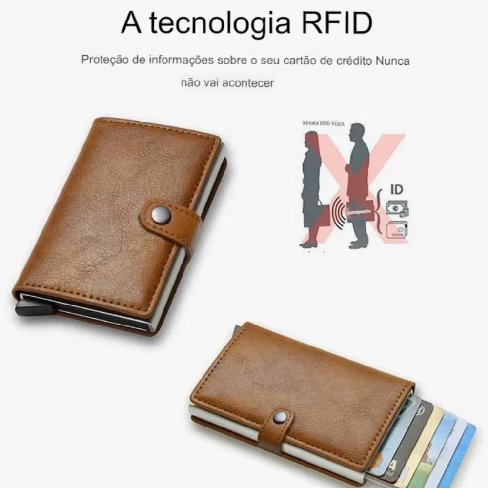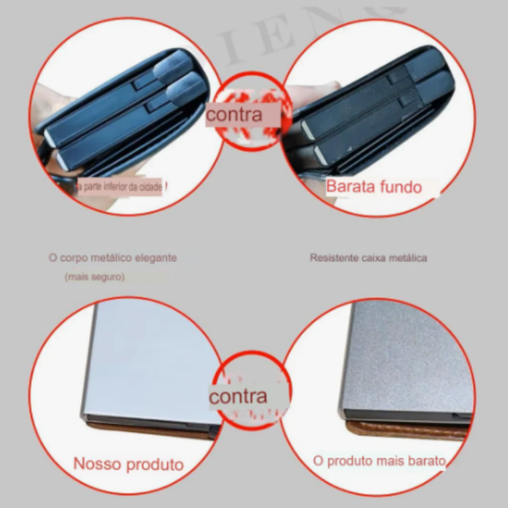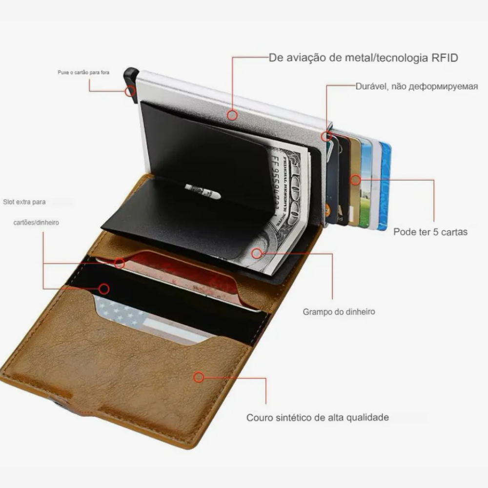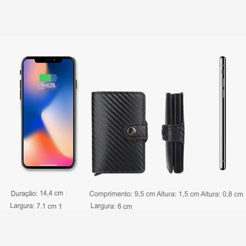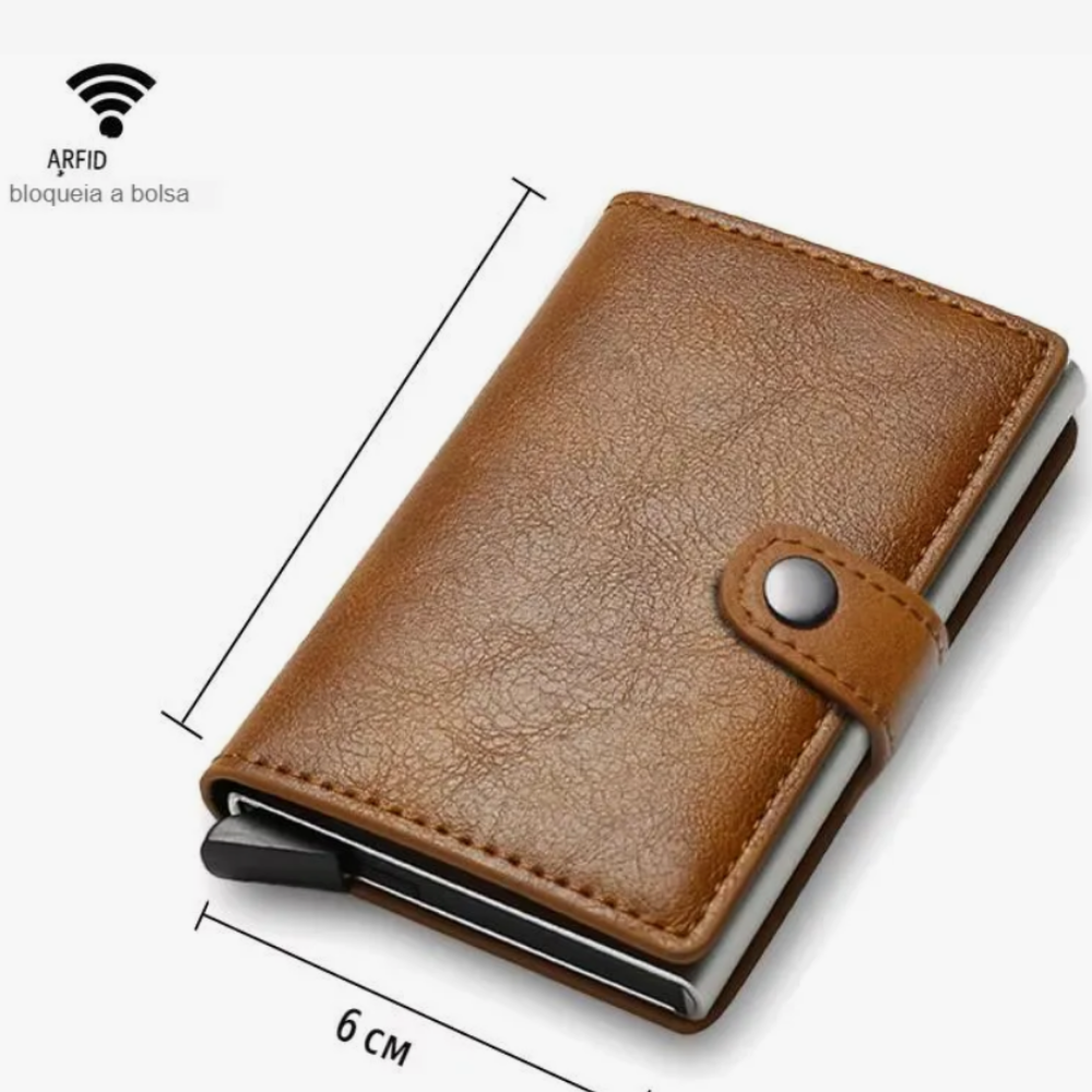 O design sólido e atraente deste porta-cartões são complementados pelo prático tipo de fecho "Hasp", proporcionando fácil acesso aos seus cartões de crédito de maneira segura. Além disso, o formato em caixa confere organização, permitindo que você armazene seus cartões de forma ordenada e acessível a qualquer momento.