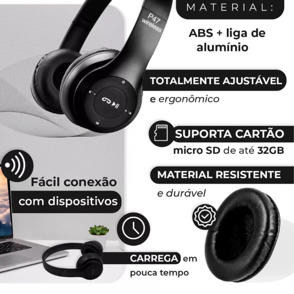 - Conforto e Ajuste: Totalmente ajustável, macio e confortável de usar, ergonomicamente projetado para se adaptar ao contorno de suas orelhas.
